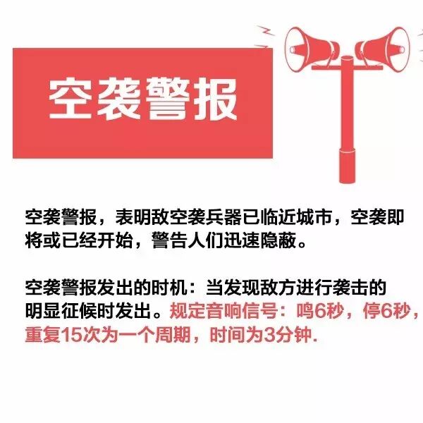 那么,对于防空警报你了解多少呢?能分辨出不同音响信号代表的含义吗?听到警报后应该怎样去做?一起来了解一下!