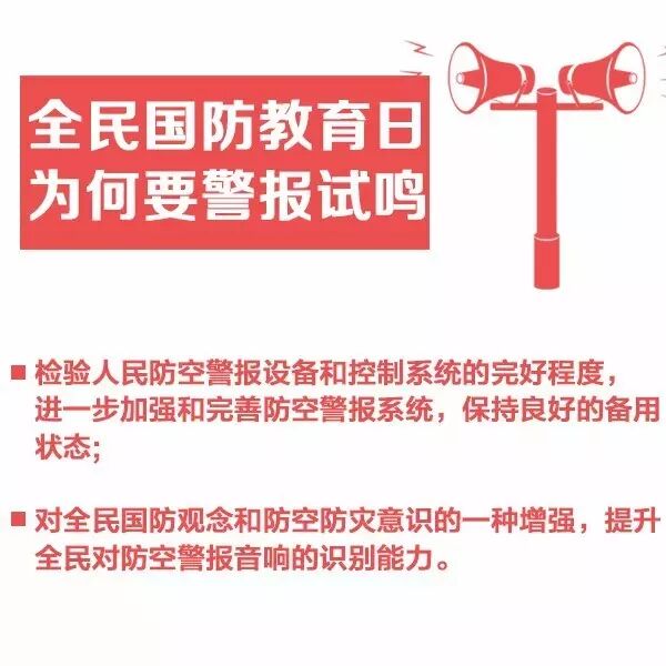 每年9月的第三个星期六为全民国防教育日。今天是我国第16个全民国防教育日。为增强人们的国防观念,包括北京在内的全国多地鸣响防空警报。